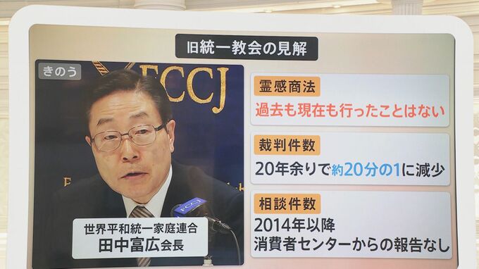 例えば、霊感商法が指摘されていることについて、「過去も現在も行ったことはない」と話したんです。これは、名前が変わる前も後も一貫して行ったことはないという立場だということです。