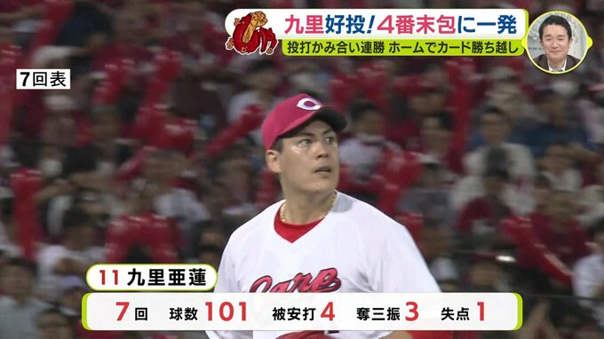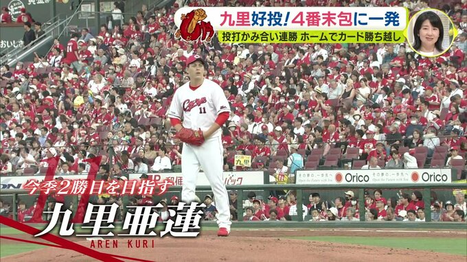 9回は、守護神・栗林良吏 が、しっかり締めてゲームセット。カープは、連勝でカード勝ち越し。