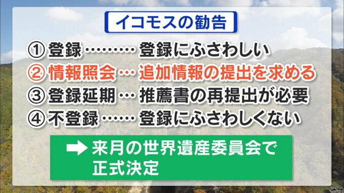 世界文化遺産登録に関する“イコモスの勧告”には4段階あります。登録がふさわしいとする「登録」、そして「情報照会」・「登録延期」・「不登録」です。今回、『佐渡島の金山』に対してなされた「情報照会」は、…