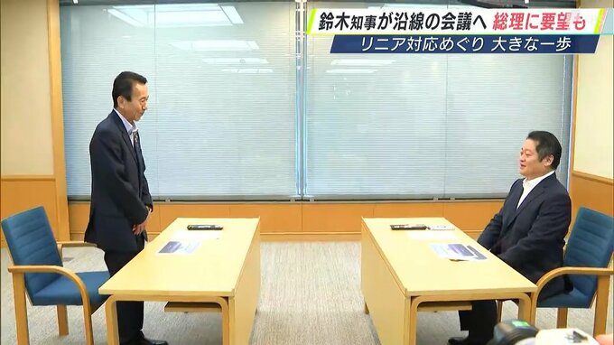 リニア新幹線をめぐっては、長崎知事から鈴木知事に山梨県内で実施しているボーリング調査の現地視察を提案したということです。