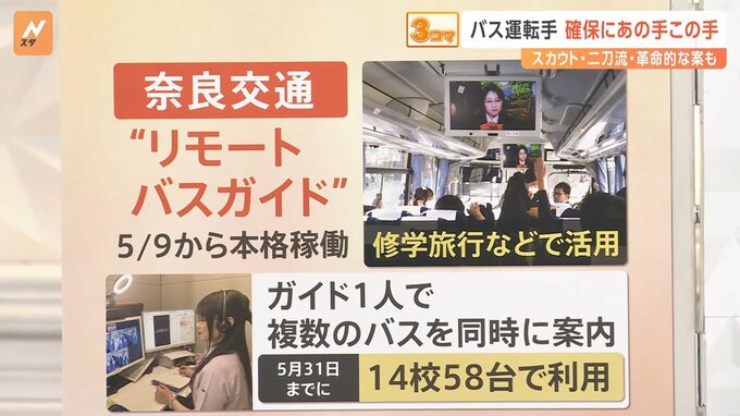 修学旅行などでバスガイドの需要が多い奈良県の「奈良交通」では、5月9日から“リモートバスガイド”が本格稼働しています。