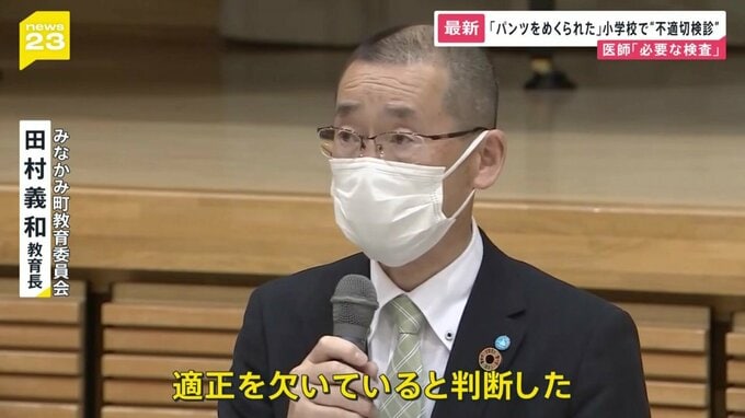 検診は2つの小学校の児童全員、約100人が受けていて、男女問わず全員が下腹部を確認されたといいます。教育委員会は謝罪し、検診を行った医師も取材に応じました。