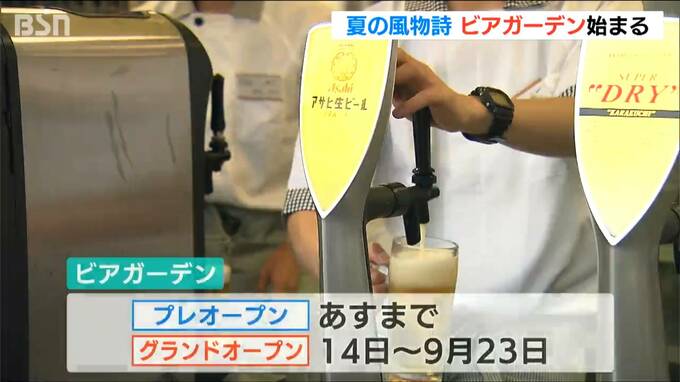 ビアガーデンは8日までプレオープンで、14日にグランドオープンします。