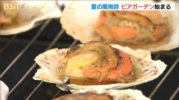 新潟市中央区の新潟グランドホテルで開かれたビアガーデン。プレオープン初日の7日、大勢の人たちで賑わいました。サーロインステーキやホタテなどの海鮮といった和洋中30種類以上が揃います。また料理は、ライブキッチンで調理され、参加した人たちはビールジョッキ片手に出来立ての料理を楽しんでいました。
