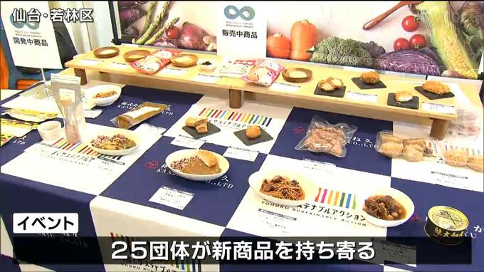 8日、仙台市若林区で開かれたイベントには、自治体や企業など25の団体が新商品を持ち寄りました。