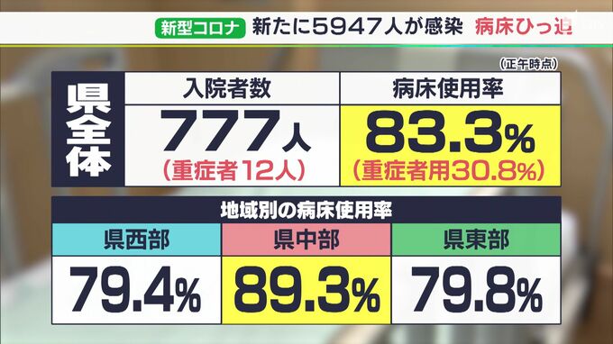 静岡県全体の病床使用率は83.3%で、中でも、県中部は89.3%とひっ迫した状況が続いています。