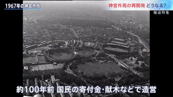 そもそも神宮外苑は、約100年前、国民からの寄付金や献木などによって造られた。