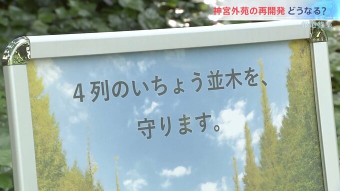 事業者は「4列のいちょう並木を守る」と言うが、景観が変わってしまうのではないかと不安を感じている人も多い。