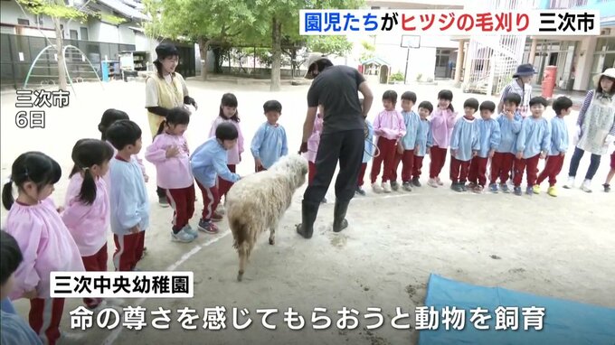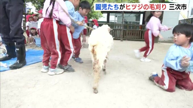 広島県三次市にある幼稚園で、園児たちが「ヒツジの毛刈り」にチャレンジしました。