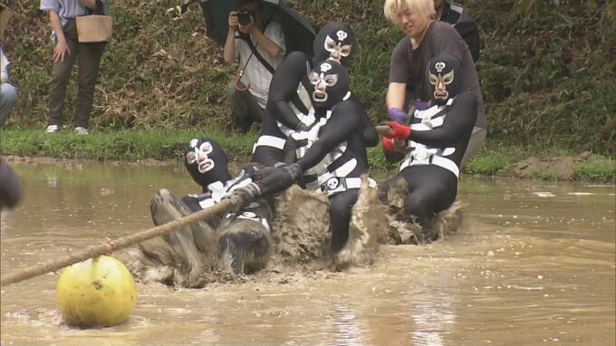 勝っても負けても泥まみれ。三重県多気町では田んぼ綱引き大会が開かれました。自衛隊や小学生のバスケチームなど16チームが参加し優勝賞品のお米90キロをかけて力を競いました。チームは力だけでなくユニフォーム…
