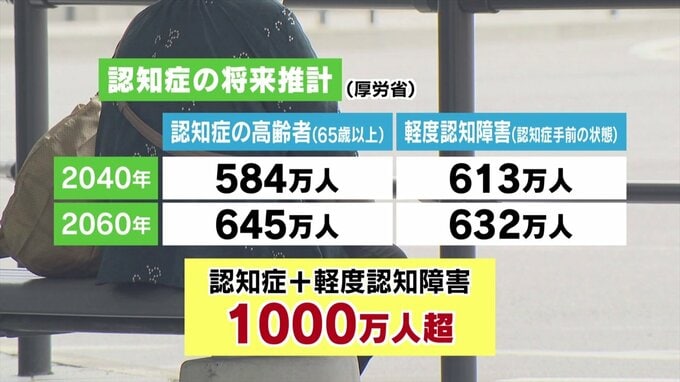 厚生労働省によりますと65歳以上で認知症の人は2040年に584万人、2060年には645万人と推計されています。