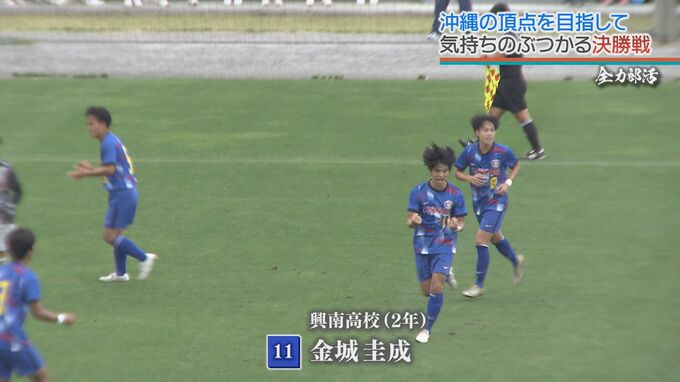 すると12分。中盤でボールを奪った興南は、キャプテン大塚遥人のアシストを受け、再び金城圭成。このチャンスは逃さなかった。欲しかった先制点を奪い、試合を動かす。