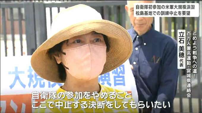 「日本が軍事化していくということを一番懸念しています。自衛隊の参加をやめること、ここで中止する決断をしてもらいたい」