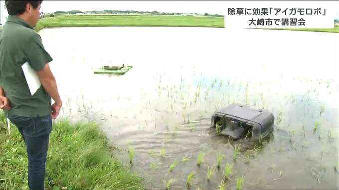 「アイガモロボ」と呼ばれる水田の雑草対策で開発されたロボットの講習会が宮城県大崎市で開かれました。