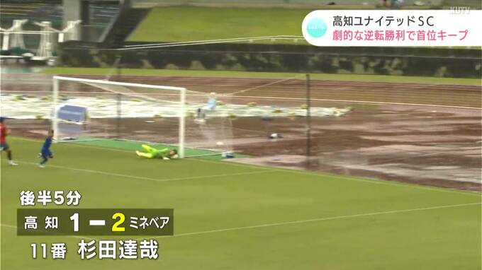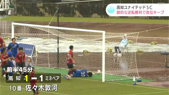 サッカーJFL、高知ユナイテッドSCのホーム戦が9日に行われ、チームは雨を吹き飛ばすような逆転劇を見せました。