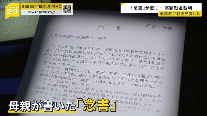 「献金は自由意思」「返金請求一切しない」旧統一教会信者が書いた“念書”は有効か無効か…最高裁の判決が来月言い渡されます。1審2審は教団側が勝訴していますが、これまでの判決が見直される可能性もあります。