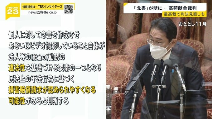 「個人に対して念書を作成させ、あるいはビデオ撮影していること自体が法人等の(献金の)勧誘の違法性を基礎づける要素の一つとなり、民法上の不法行為に基づく損害賠償請求が認められやすくなる可能性があると判断する」