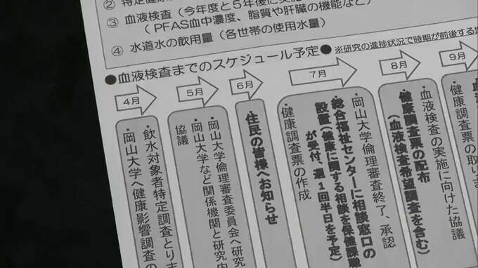岡山県吉備中央町の浄水場から有害性が指摘されている有機フッ素化合物・PFASが高い濃度で検出された問題で、昨夜(10日)、住民を対象とした健康影響調査に関する説明会が開かれました。