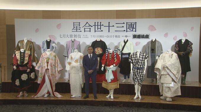 歌舞伎俳優の市川團十郎さんが、歌舞伎座「七月大歌舞伎」昼の部『星合世十三團』の取材会に登場しました。