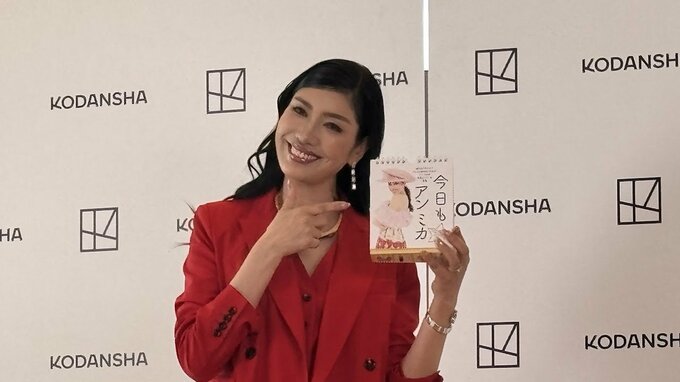 モデルでタレントのアン ミカさんが、スーパーポジティブ日めくりカレンダー「今日もアン ミカ」の発売記念会見に登場しました。