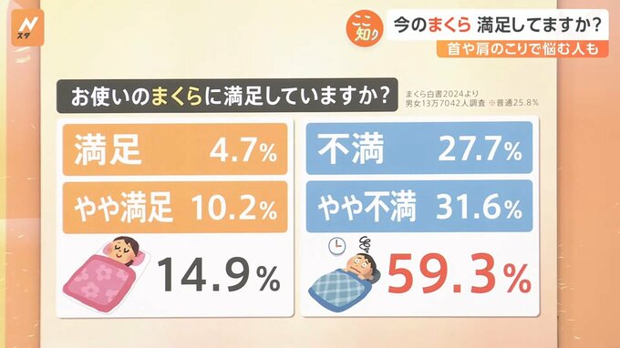 使用中のまくら「不満」「やや不満」59.3%