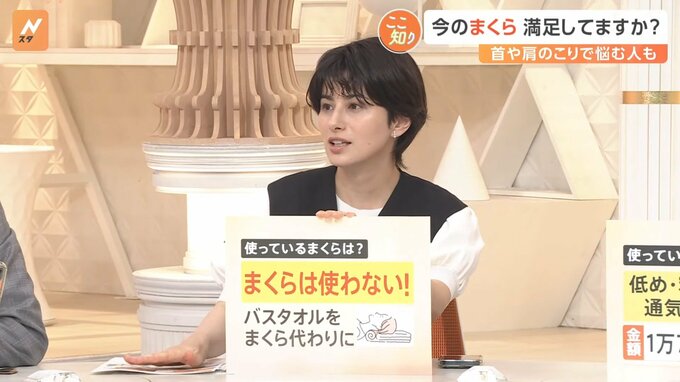 泊まりのロケで宿泊先のまくらがいつもと違うと、寝られないタイプなんです。バスタオルは、どこに行っても調整できるのがいいです。ただ、ちょうどいい高さのまくらがあったら欲しいと思っています。