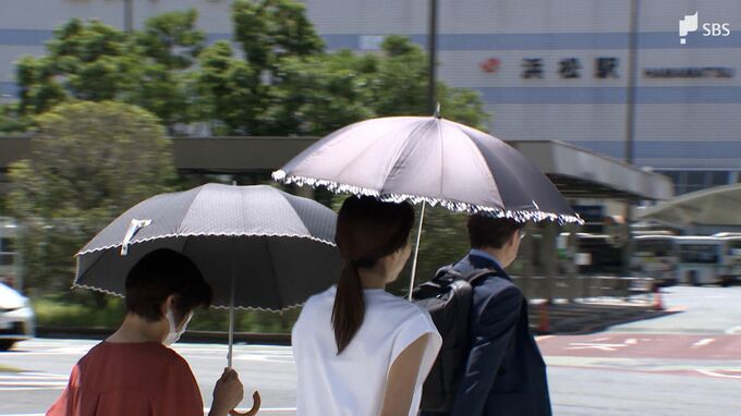 浜松市の中心市街地では、暑さを避けるため日傘をさす人や信号待ちを木陰で過ごす人たちの姿が目立ちました。