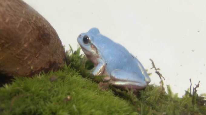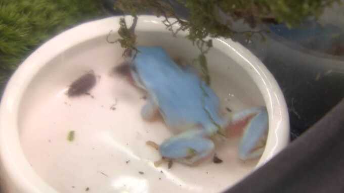 青色のカエルは、10月に行われる文化祭などで一般公開される予定です。