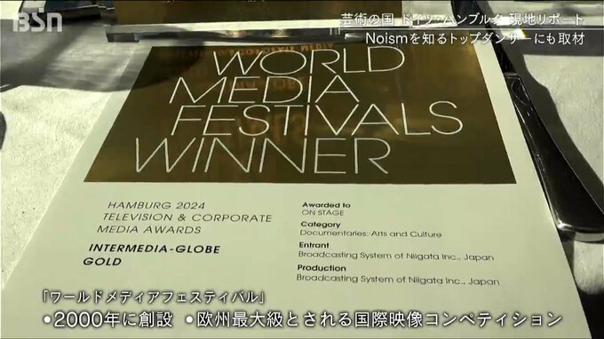 新潟市民芸術文化会館「りゅーとぴあ」に専属する舞踊団『Noism』を追ったBSN新潟放送のドキュメンタリー番組が、ドイツの国際映像コンクールで“金賞”を受賞しました。