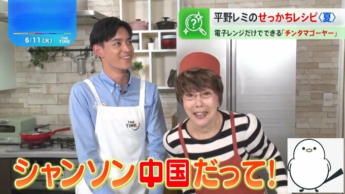 レンジで加熱している間、今年25歳になる古田アナから「25歳の時は何をしていました?」と聞かれたレミさんは、「25歳はシャンソンを歌っていた。シャンソンって知ってる?」と話し、自慢のシャンソンを歌って披露。