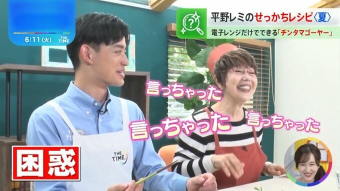 レミさんが「ゴーヤーはドーヤー?」とダジャレで返し、「言っちゃった 言っちゃった」とはしゃぐも、古田アナは、「おお!」と返すのが精いっぱい。視線を泳がせ半笑いで困惑…。