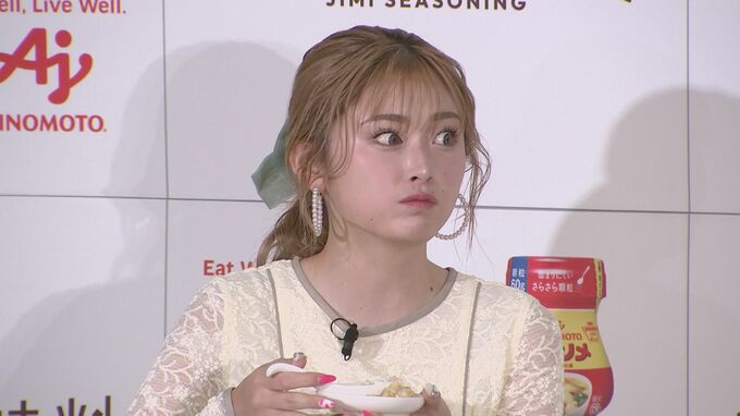 2問目は「チャーハン」。ゆうちゃみさんは食べた瞬間、“うんまっ!おいしっ!”と、ご機嫌な様子。こちらも難なく正解したゆうちゃみさんに、「正解の方には地味調味料の『丸鶏がらスープ』を適正量の2倍入れた」という事が発表されると、“2倍入れても失敗しないんすか。奇跡じゃね?”と、ギャルっぽさ全開で感動していました。