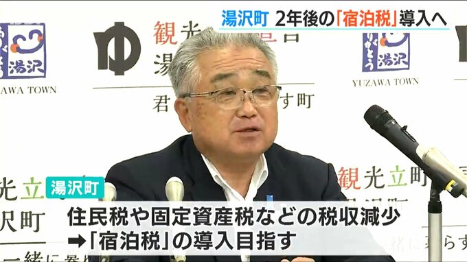「観光立町湯沢町として今後も発展していくために宿泊税という新たな財源の導入は必要であるという認識をしている」と話し、人口の減少や町の建物の固定資産税の税収減少という背景から、「宿泊税」の導入を目指すと発表しました。