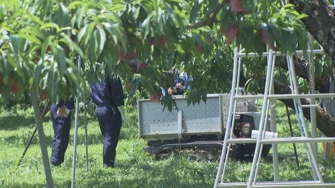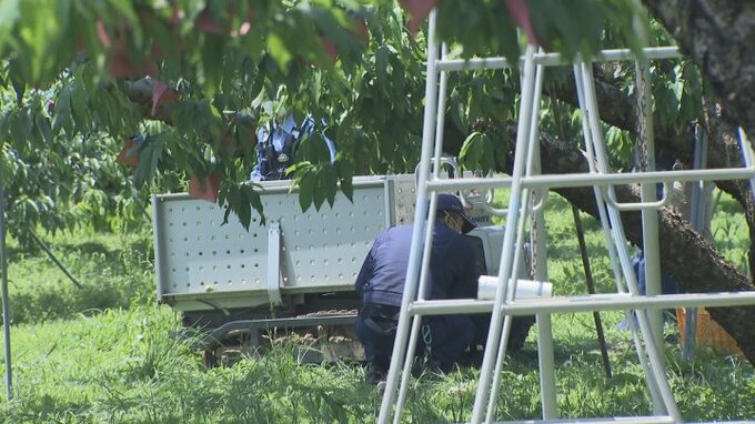 警察によりますと中村さんは午前8時ごろからモモの日焼けを防止する袋かけを行っていて、事故当時は家族とおよそ50m離れた位置で作業をしていたということです。