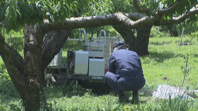 12日午前、山梨県笛吹市のモモの畑で農作業をしていた女性が高所作業機の下敷きになり死亡しました。同じケースの死亡事故は5月から3件目です。