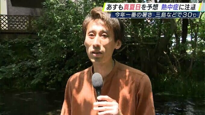 12日は、山沿いだけでなく、平野部でも気温が高くなり、三島のほか、静岡、富士など県内18の観測地点のうち10地点で今シーズン一番の暑さとなりました。