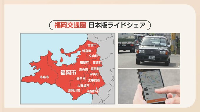 「ライドシェア」は、一般のドライバーが自分の車などに客を乗せて有料で運ぶサービスで、福岡市や春日市といった「福岡交通圏」で行われます。