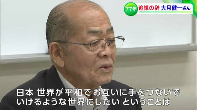 全国戦没者追悼式で「追悼の辞」を述べる、大月健一さんです。戦争で父親を亡くしました。