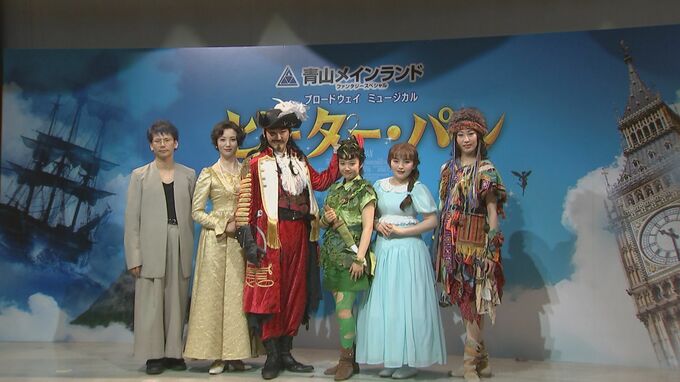 お披露目会の終了後には、フック船長役の 小野田龍之介さん、ダーリング夫人役の 壮 一帆さん、タイガー・リリー役の 住 玲衣奈さんも登場してブロードウェイミュージカル『ピーター・パン』の製作発表会が行われ、今年で初演から44年目を迎える本作への想いを語りました。