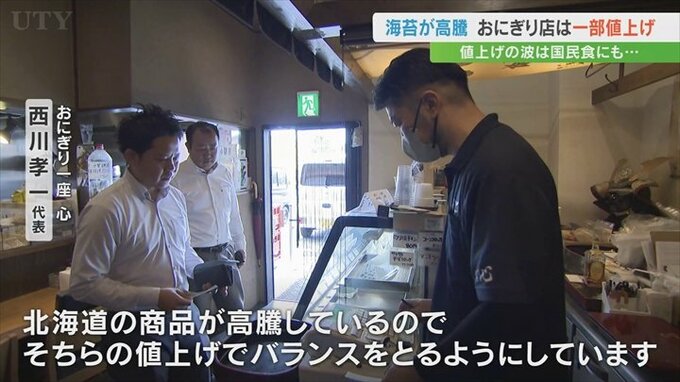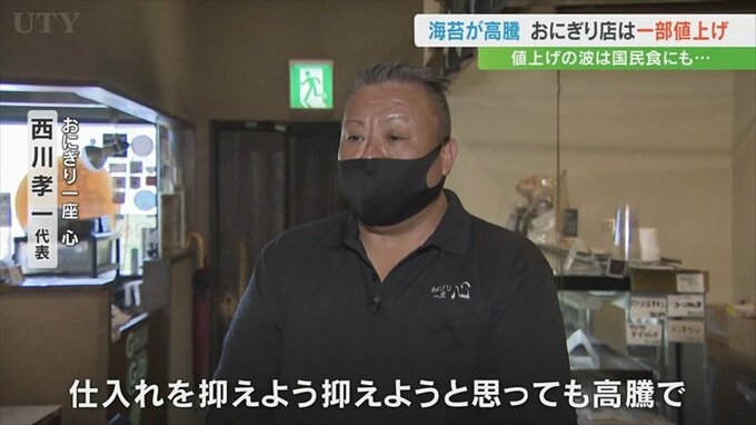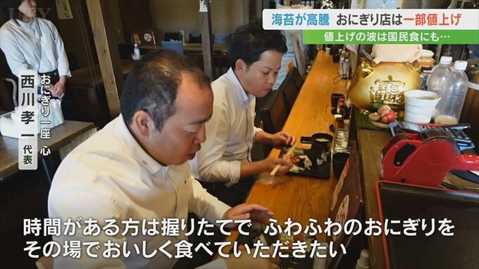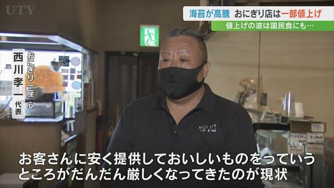 「おにぎりを作るのに海苔や塩が高騰しているので大変だなと思う。仕入れを抑えよう抑えようと思っても高騰で…」