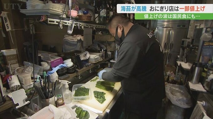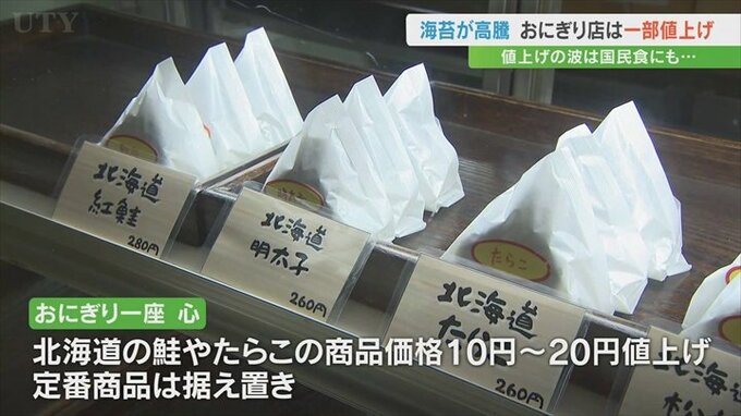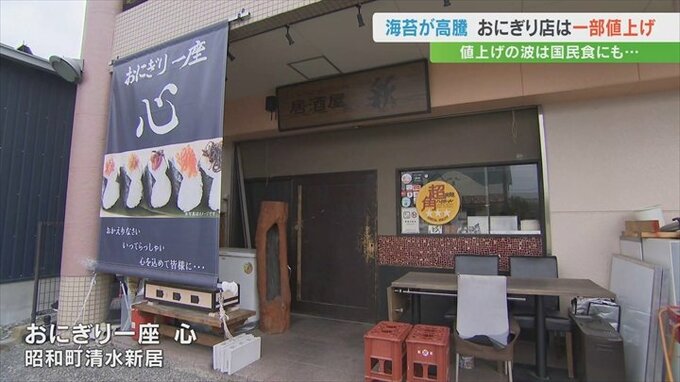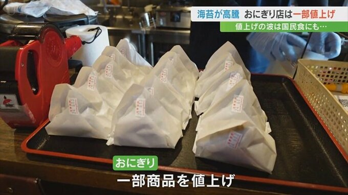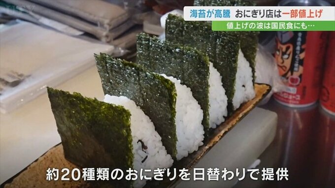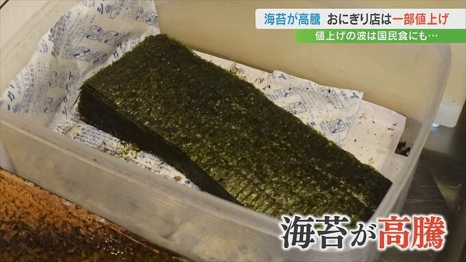 海苔が高騰し、山梨県昭和町のおにぎり専門店は、一部の商品を値上げするなど対応しています。