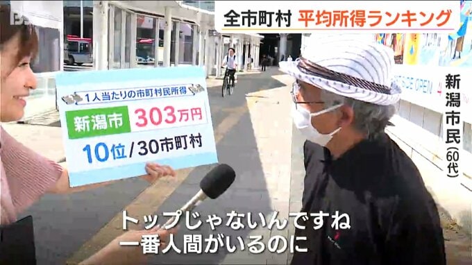 「市町村民所得は、直接、平均給与や平均収入を表すものではありませんが、経済指標の一つです。新潟市の10位という数値、市民はどう感じているのでしょう?」