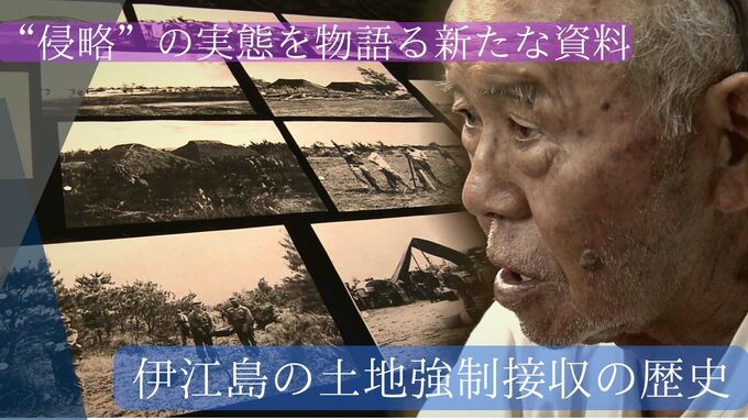 18枚の写真。沖縄戦の10年後に、伊江島で撮影されたものです。 ジープに乗った、笑顔のアメリカ兵。一方、作業を見守る子供たちは、みな不安げな表情を浮かべています。戦後、収容所から戻り、ようやく生活を取り…