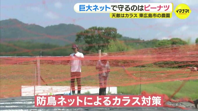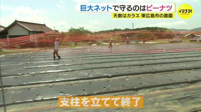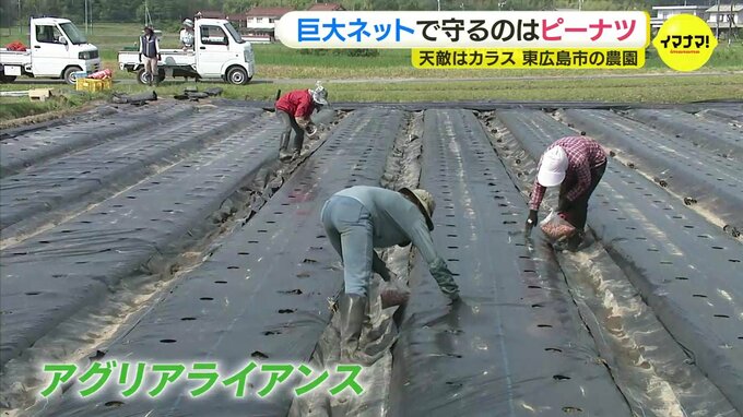 広島県東広島市の農園でピーナツの種まきがありました。最大の敵はカラス…。登場したのは畑をすっぽり覆うネットです。