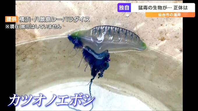 カツオノエボシは、死んでいても触手には毒が残っているため絶対に触ってはいけません。水族館によりますと黒潮に乗って北上してきたとみられるということです。