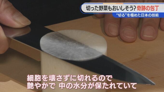 「細胞を壊さずに切れるので、艶やかで中の水分が保たれる。化粧したように野菜がきれいになる」