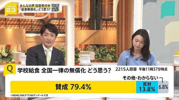 NEWS DIGアプリでは『学校給食費の無償化』について「みんなの声」を募集しました。