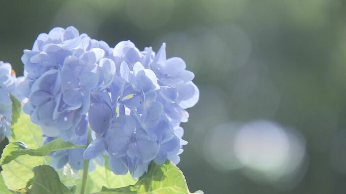 「輝いていますね。(雨が)降った後に少し光がさすとキラキラするんですよね。(魅力は)皆さんが喜んで下さるように、ブルーの絨毯で、とても清々しい色ですよね。そういうのを見て皆さんが癒されるというから、そういうあじさいにしたい今後も」