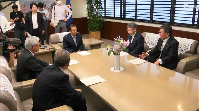 6月14日午後、鈴木知事のもとを訪れたのは、浜松市の中野市長をはじめとする多目的ドーム型スタジアム建設促進期成同盟会のメンバー4人です。中野市長らは浜松市の遠州灘海浜公園篠原地区の整備ついて、天候に左右されない多目的ドーム型スタジアムの早期の建設やプロ野球も開催できる2万2,000人規模とすることなどを要望しました。