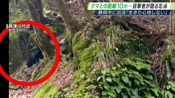 6月13日、静岡市の山間部でクマが現れ、市が警戒を呼びかけています。目撃者の男性は「生きた心地がしなかった」と当時の状況を語りました。